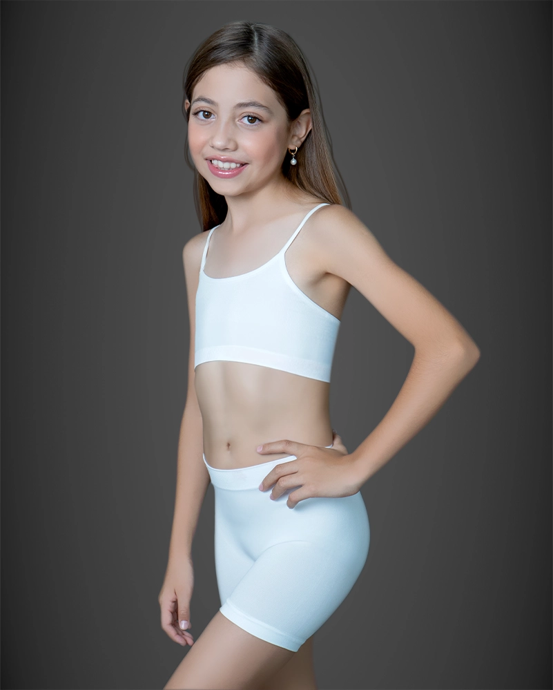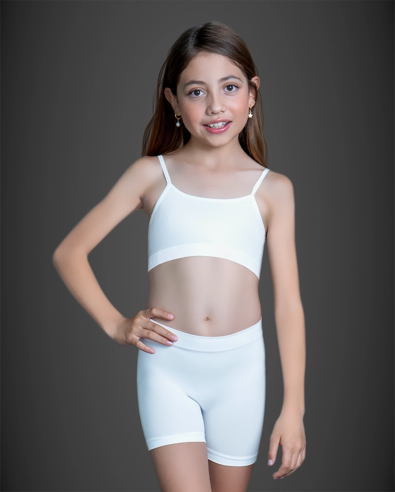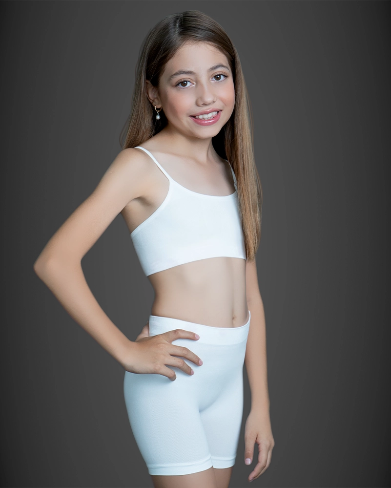 Short escolar para niña de corte alto a la cintura, con suave elastico tejido en costuras cómodas que se ajustan a tu silueta.